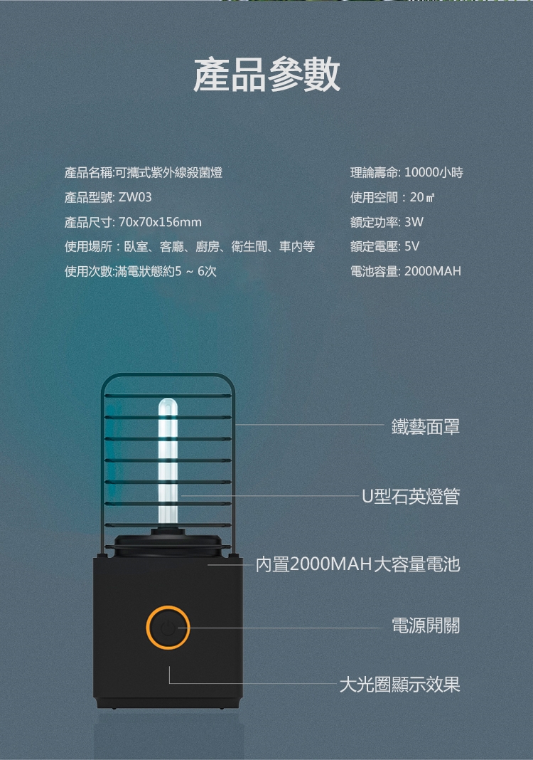 ● 操作模式:短按開關鍵,綠色指示燈點亮,紫外線燈管延時30秒啟動,每次工作30分鐘自動熄滅。 (在延時期間內,人員離開現場)