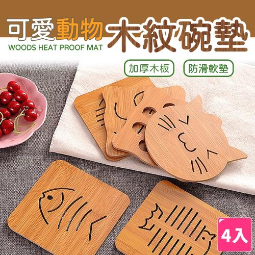 【樂邦】可愛創意簍空碗墊(4入)-木質碗墊 廚房 加厚 防燙 隔熱墊 防滑 鍋碗盤墊 隔熱墊 餐桌墊 碗墊 盤墊