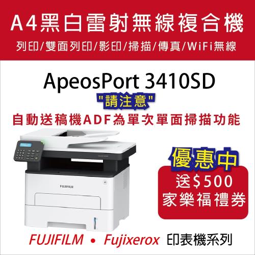 【FUJIFILM】ApeosPort 3410SD A4黑白雷射無線多功能事務複合機