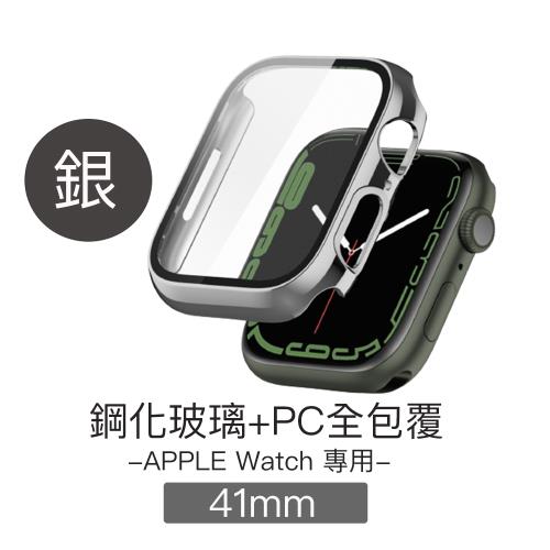 Apple Watch 41mm 鋼化玻璃+PC全包覆防摔保護殼(銀)