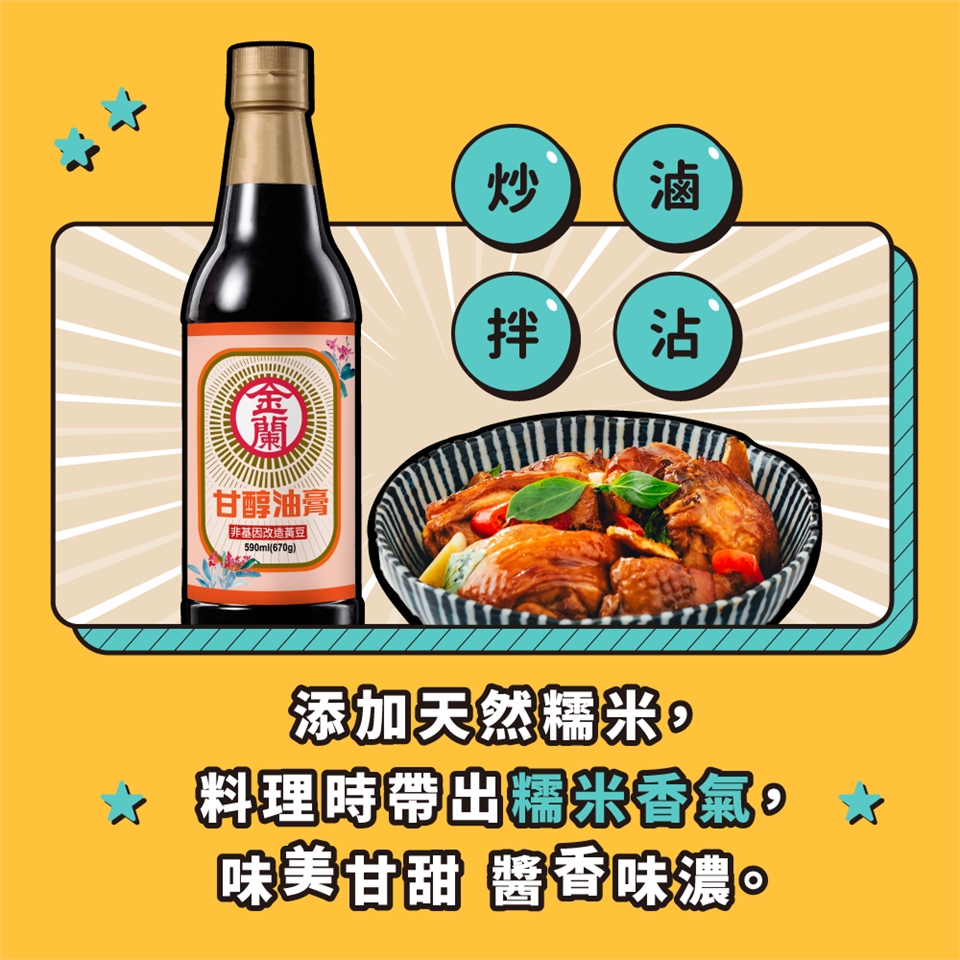 ◎ 以金蘭純釀造醬油為底,加入天然糯米 增香稠