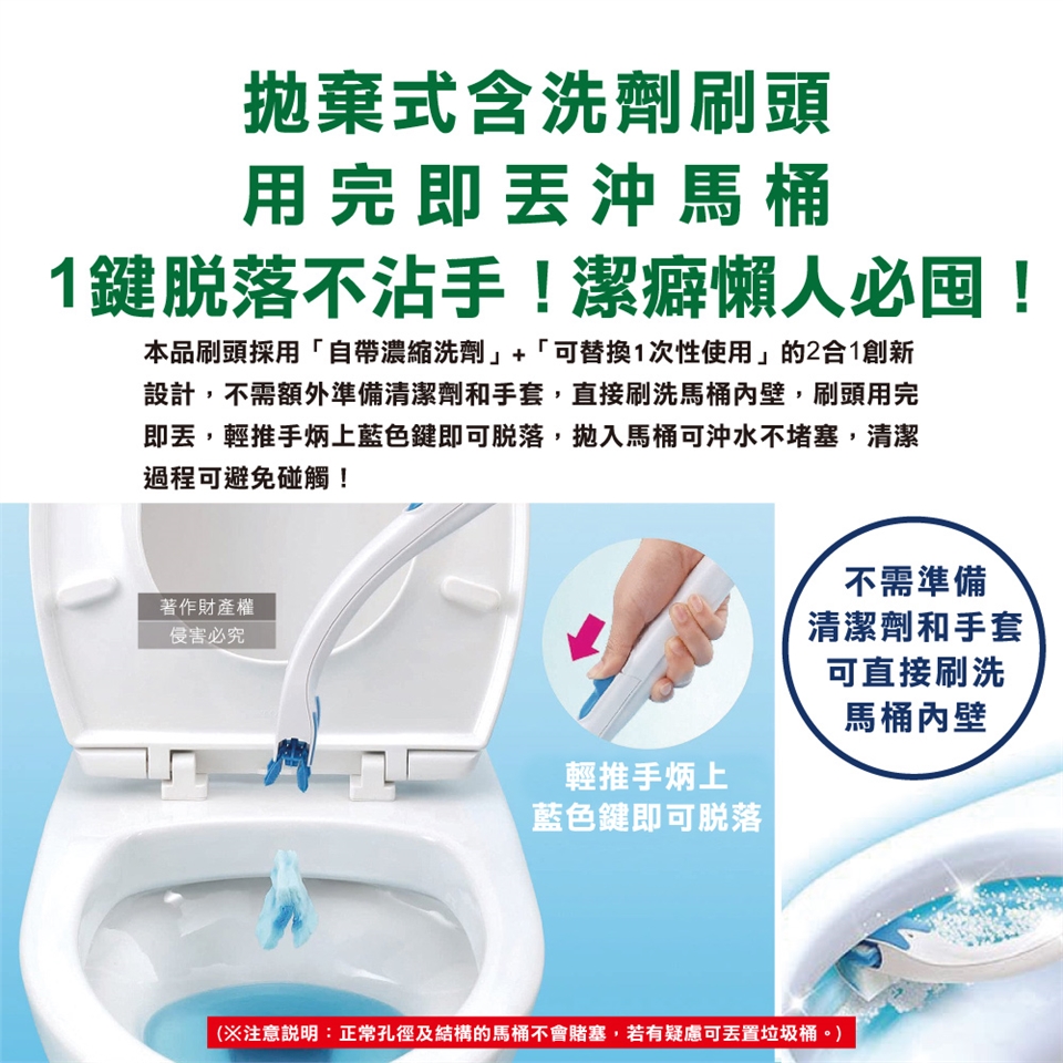 ●品名:免沾手拋棄式濃縮洗劑馬桶刷清潔組