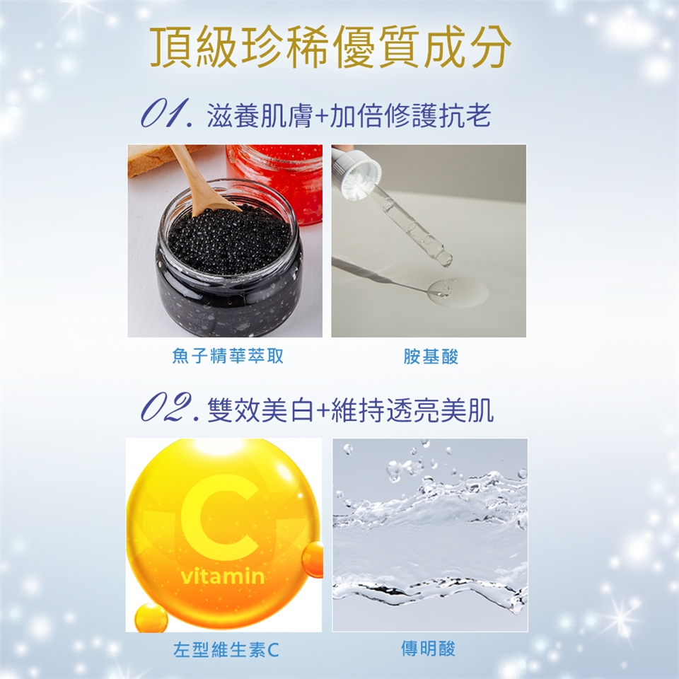 *徹底潔面後取面膜撕開鋁箔,將面膜完全服貼於臉上,10-15分鐘完全吸收取下即可