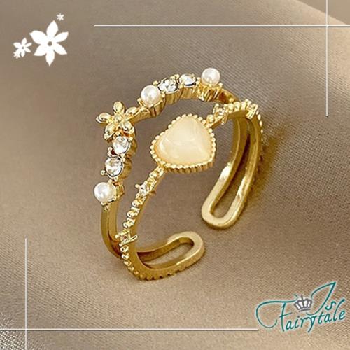 【伊飾童話】貓眼愛心*海星水鑽彈性開口戒指/金