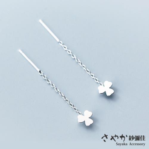 【Sayaka紗彌佳】925純銀小清新三葉心型草造型垂墜耳環(耳線款)