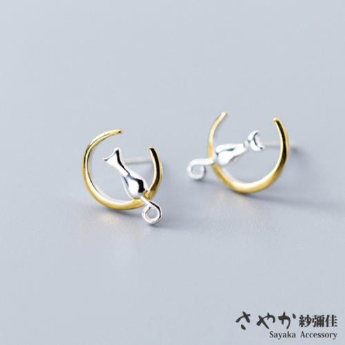 【Sayaka紗彌佳】925純銀弦月上的貓咪耳環 -金色