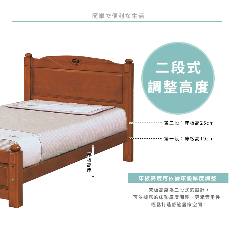 床板高度二段式設計,可依據您的床墊厚度自由調整,更添實用性!
