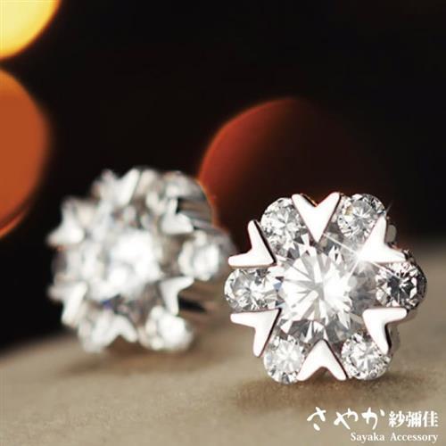 【Sayaka紗彌佳】雪舞紛飛愛心鑲鑽耳環 施華洛世奇元素