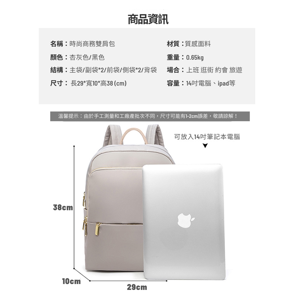 2.防水:若有標示防水,指材質表面有防水加工,以達輕微雨勢下之防雨效果,請勿直接淋雨使用(會從縫線及拉鍊處進水)。