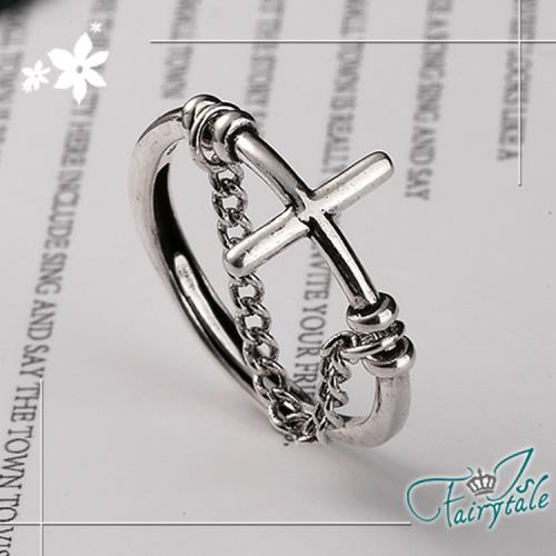 【伊飾童話】鍊條十字架*復古白銀中性開口戒指