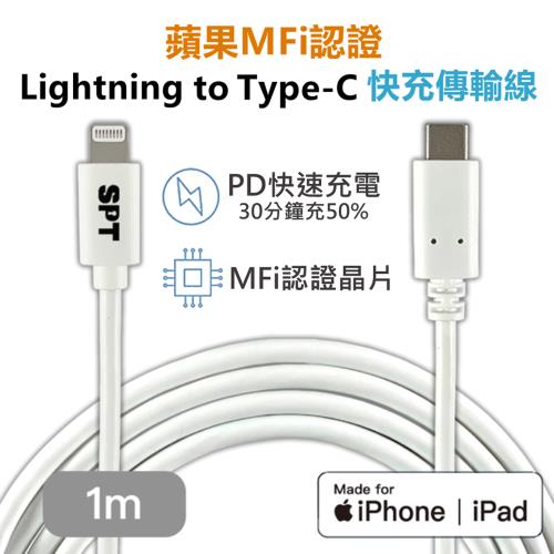 【SPT聖保德】蘋果MFi認證 iPhone快充傳輸 充電線 Lightning to Type-C