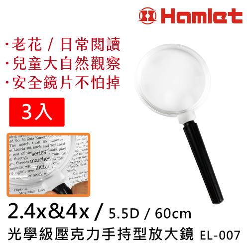 (3入一組)【Hamlet 哈姆雷特】2.4x&4x/5.5D/60mm 光學級壓克力手持型放大鏡【EL-007】
