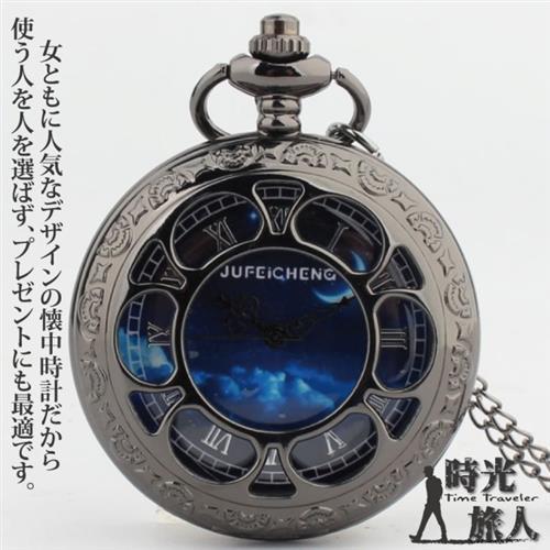【時光旅人】月夜之星鏤空太陽花造型翻蓋懷錶/項鍊(長鍊設計)
