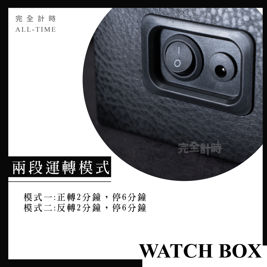 ‧錶枕設計:雙層結構設計,錶枕外的封套可自行增減,以配合飾品的規格。 .2段運轉模式 : 模式二: 反轉2分鐘,停6分鐘 | |