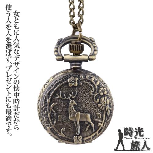 【時光旅人】復古文藝風格麋鹿森境造型翻蓋懷錶附長鍊 -單一款式