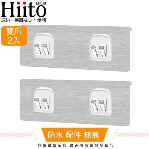 Hiito日和風 無痕很黏系列 鐵架專用髮絲紋掛勾 雙爪卡扣2入-6x14