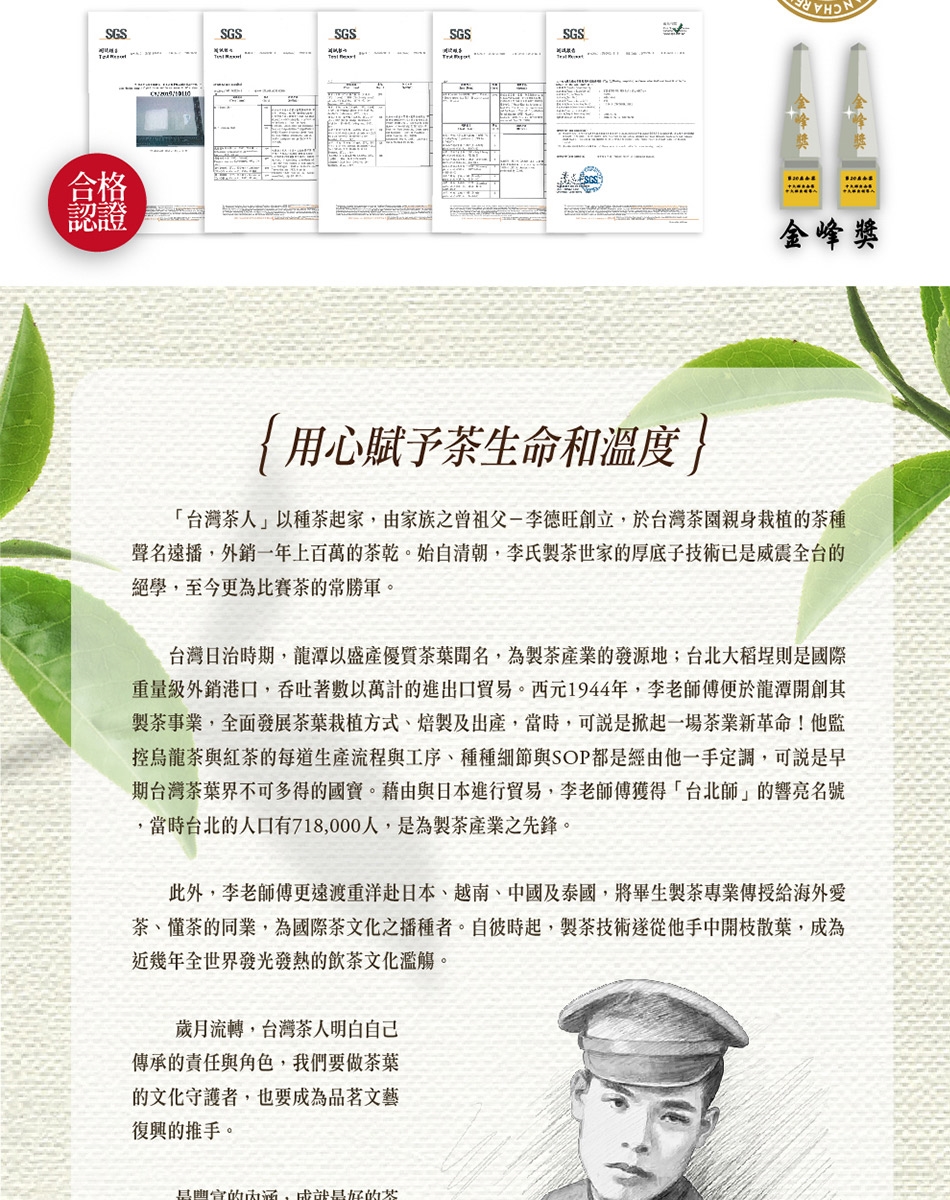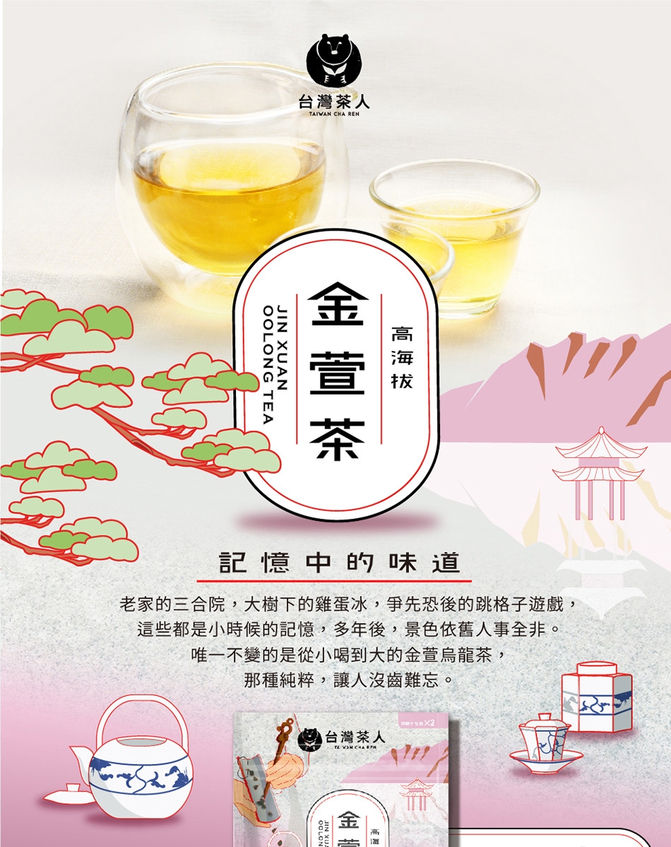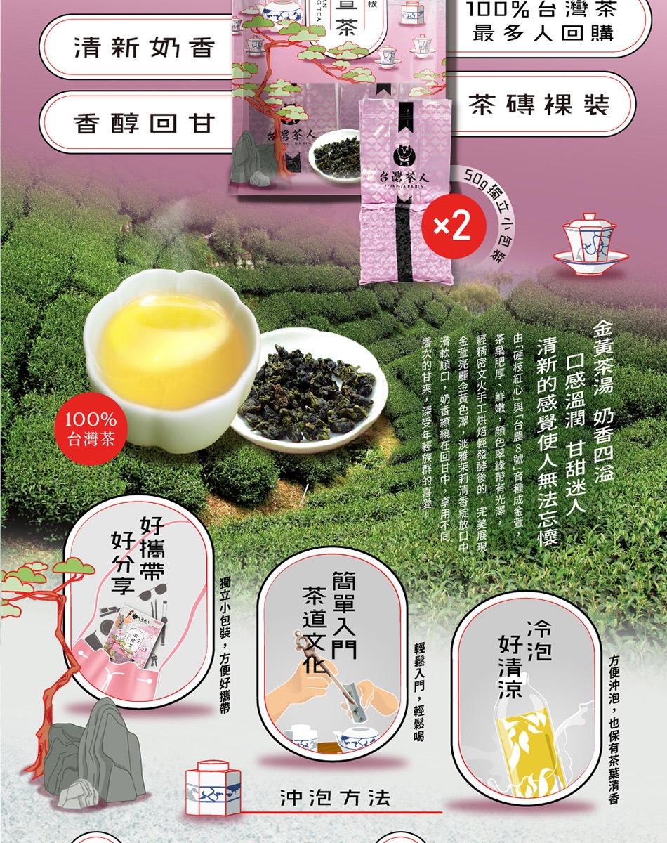 *熱沖:取出6g茶乾至入茶壺,沖入90度300cc熱水旋即倒掉以醒茶,第一泡或第二泡停留45~50秒,即為最佳風味時間,可依個人口味回沖3~7泡。