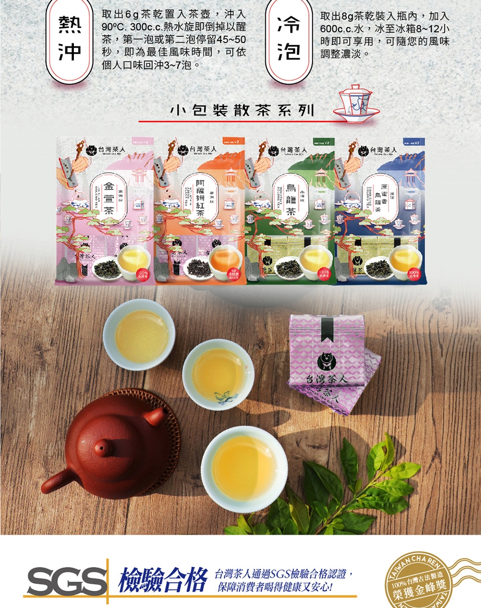 *冷泡:取出8g茶乾裝入瓶內,加入600cc水,冰至冰箱8~12小時即可享用,可隨您的風味調整濃淡。