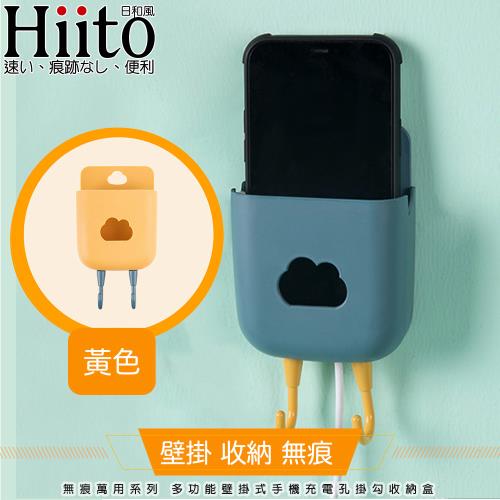Hiito日和風 無痕萬用系列 多功能壁掛式手機充電孔掛勾收納盒 黃