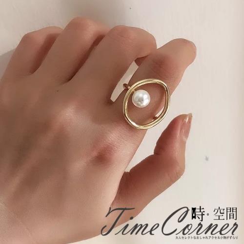 『時空間』簡約鏤空線條圓環珍珠造型戒指 -單一款式