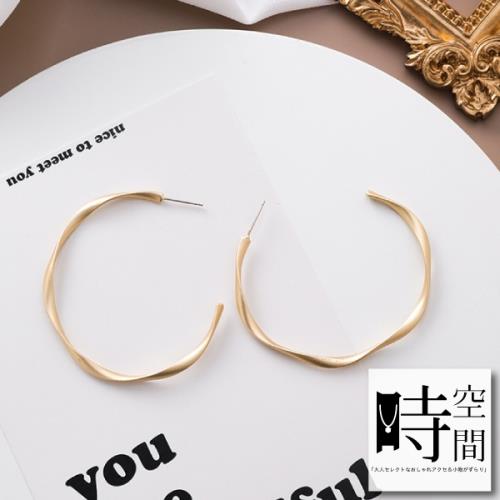 『時空間』都會時尚啞光霧感金屬幾何不規則造型耳環 -大C環圈款