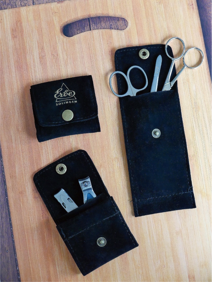 指甲剪或角質層剪刀,組合剪刀,指甲或皮膚鉗,鑷子,指甲清潔器,銼刀等等。幾乎所有儀器均由內部製造,然後鍍鎳,鍍鉻,鍍金或直接由不銹鋼製成。
