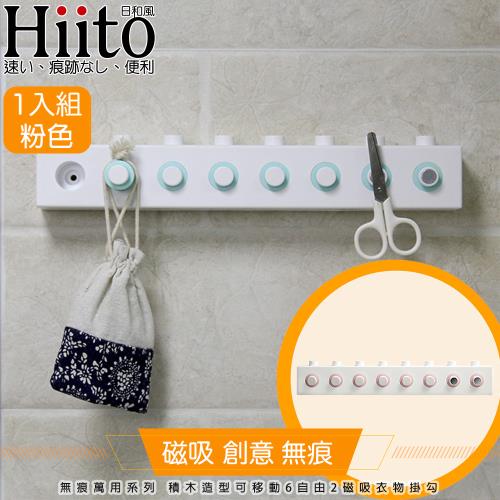 Hiito日和風 無痕萬用系列 積木造型可移動6自由2磁吸衣物掛勾 粉