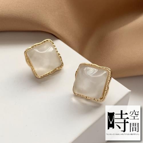 『時空間』925銀針簡約幾何方形扣造型耳環