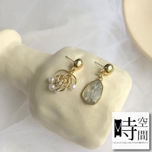 『時空間』925銀針低調冷淡風不對稱造型珍珠耳環