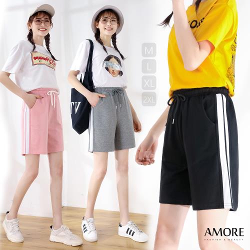 AM艾莫兒 韓版夏日百搭條紋多色五分短褲
