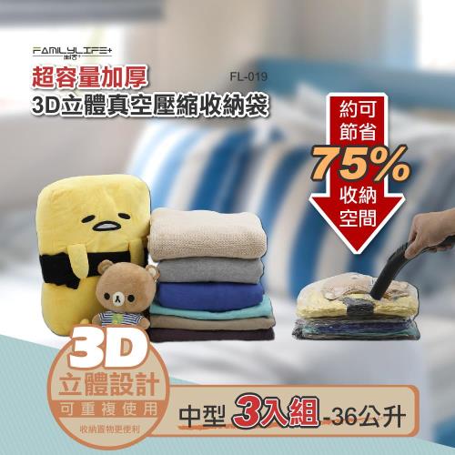 【FL生活+】3D加厚超壓縮立體壓縮袋-中型三入組(FL-019-3)