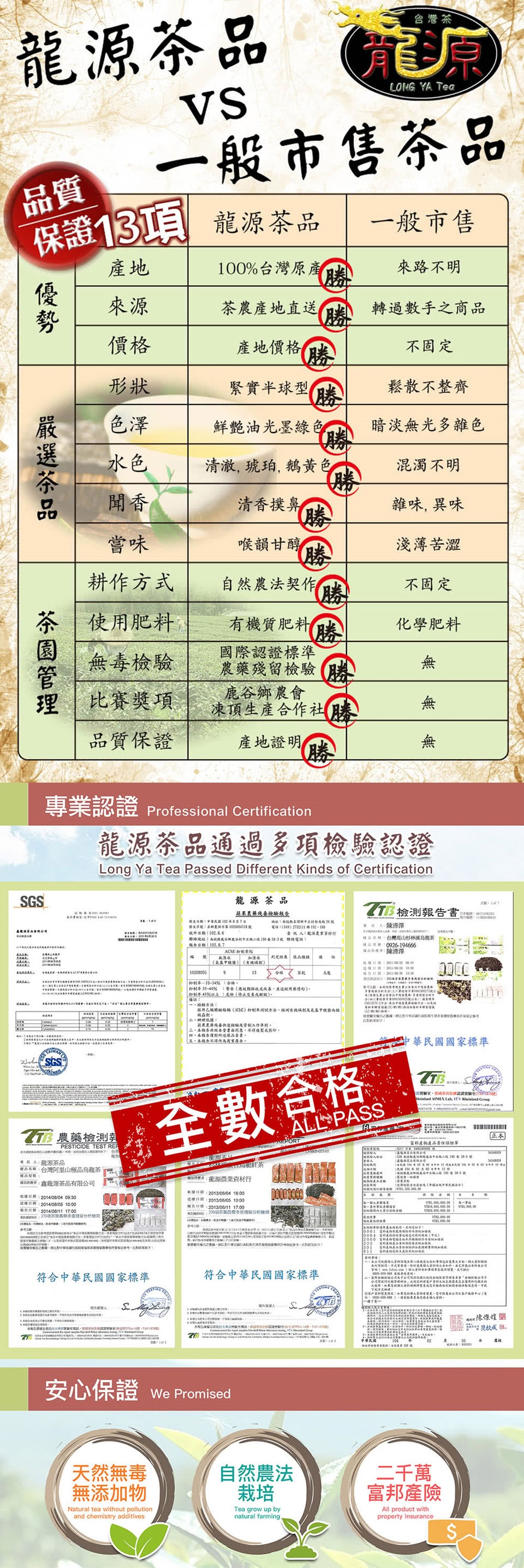 1.本公司堅持100%台灣茶葉並逐批檢驗通過農藥檢測。