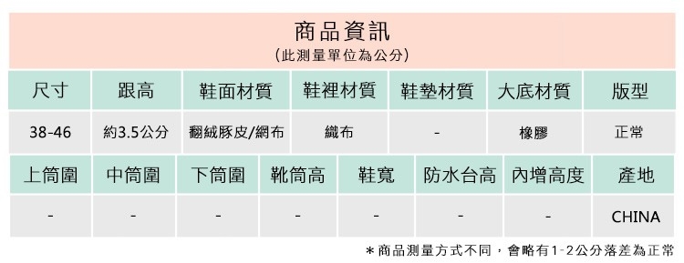2.鞋類商品依功能及用途之不同,鞋底各有其止滑係數之個別不同,使用鞋類商品請用於正常平坦之路面,非雨鞋或雨靴類商品,請避免穿著於下雨濕滑路面上行走。