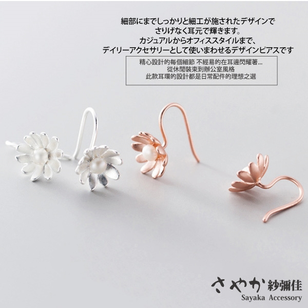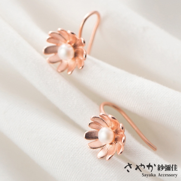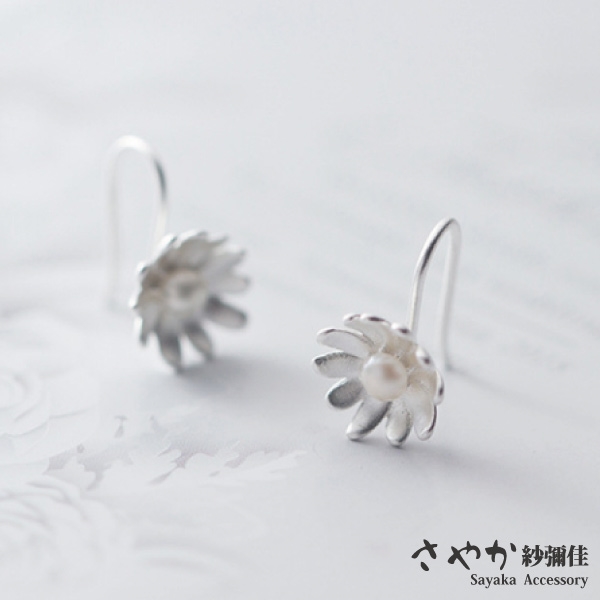 雛菊的外形清新柔美,搭配柔美的珍珠點綴增加了在耳環上美的視覺享受