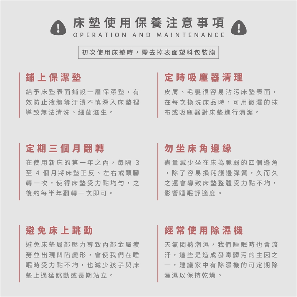 (5)床墊為接單後台灣工廠排單製作,製作及配送約需10-15個工作日,如無法等待者請審慎購買。