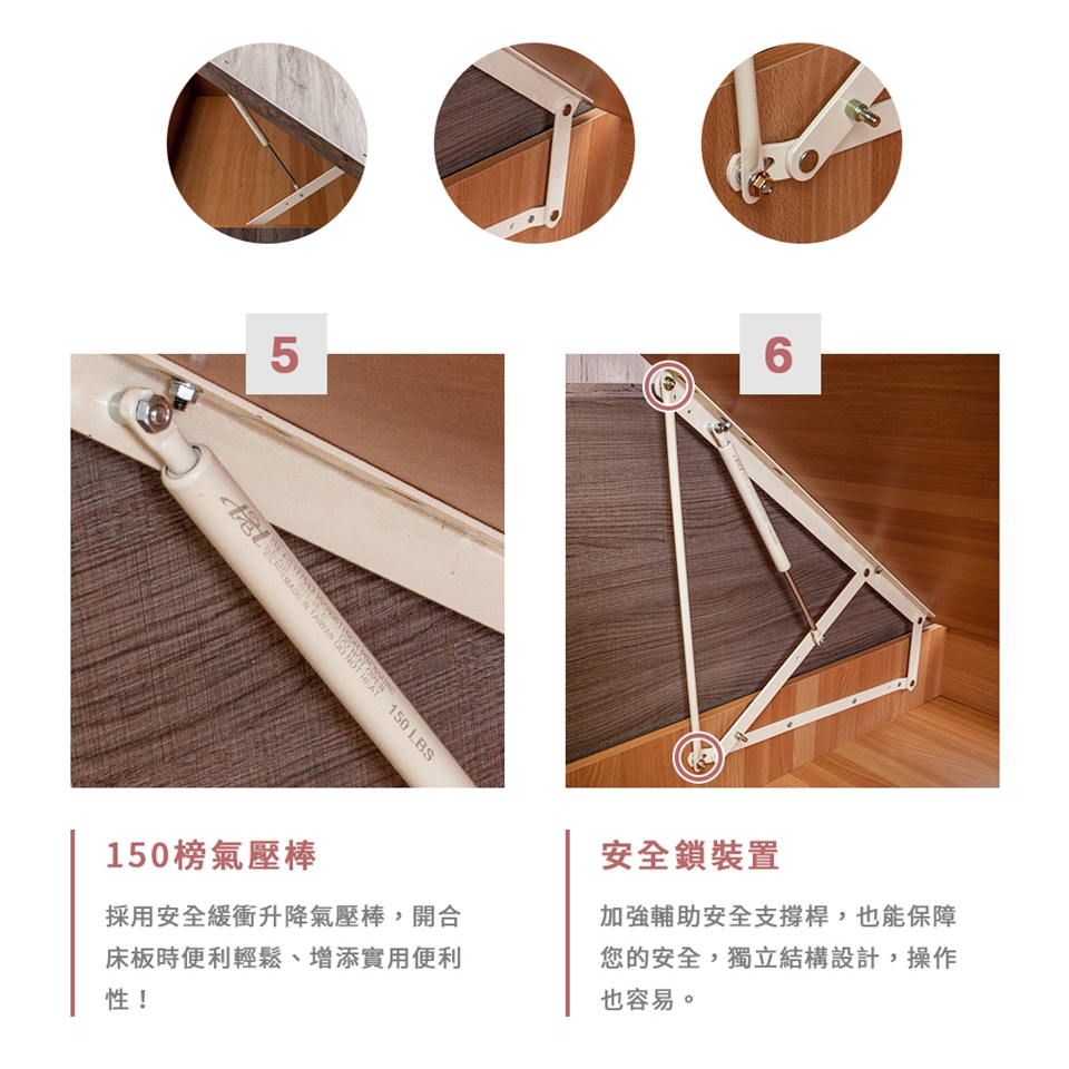 150磅緩衝式氣壓棒,緩慢開闔,安全鎖裝置,讓您使用時安全又省力!