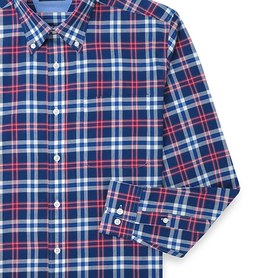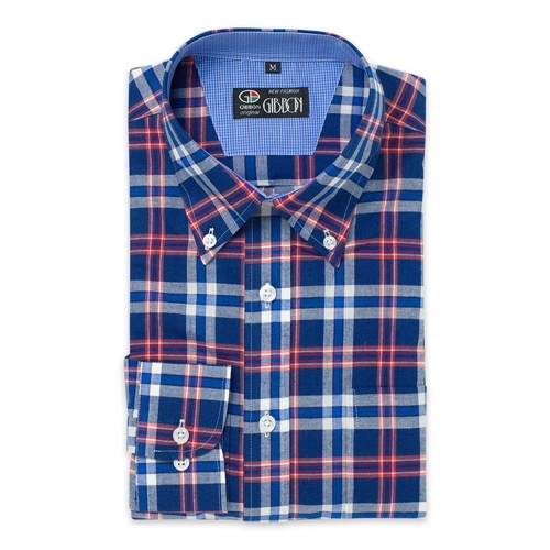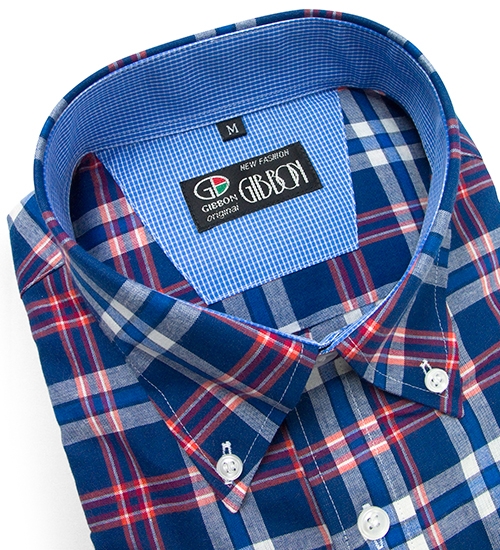 GIBBON 英倫風格紋休閒長袖襯衫‧藍紅格