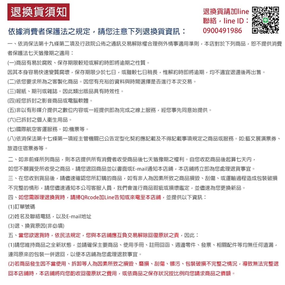 ★依消費者保護法,收到商品享有七日鑑賞期,有任何問題請於期間內反應,一經使用,恕無法接受退換貨。
