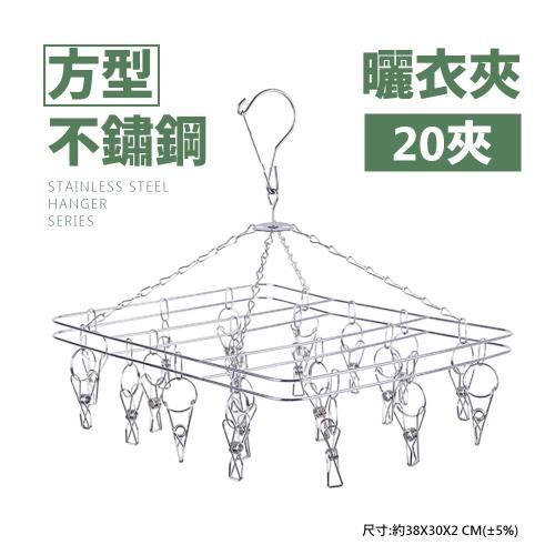 【樂嫚妮】 不鏽鋼曬衣架20夾-2款-2入組