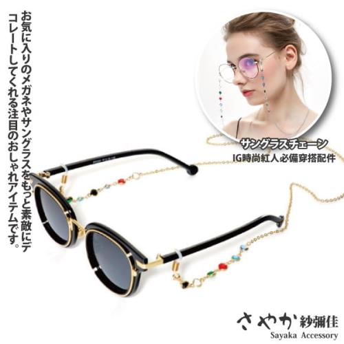 【Sayaka紗彌佳】時尚潮流色彩斑斕水鑽造型眼鏡金屬防滑鍊