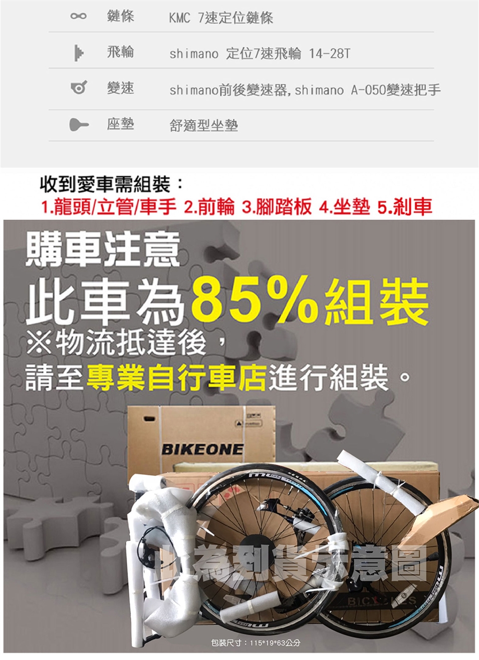若沒有組裝單車經驗的顧客 請將車拿至車店交由專業人員組裝!