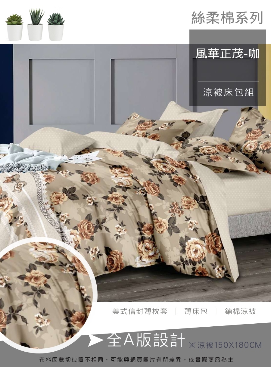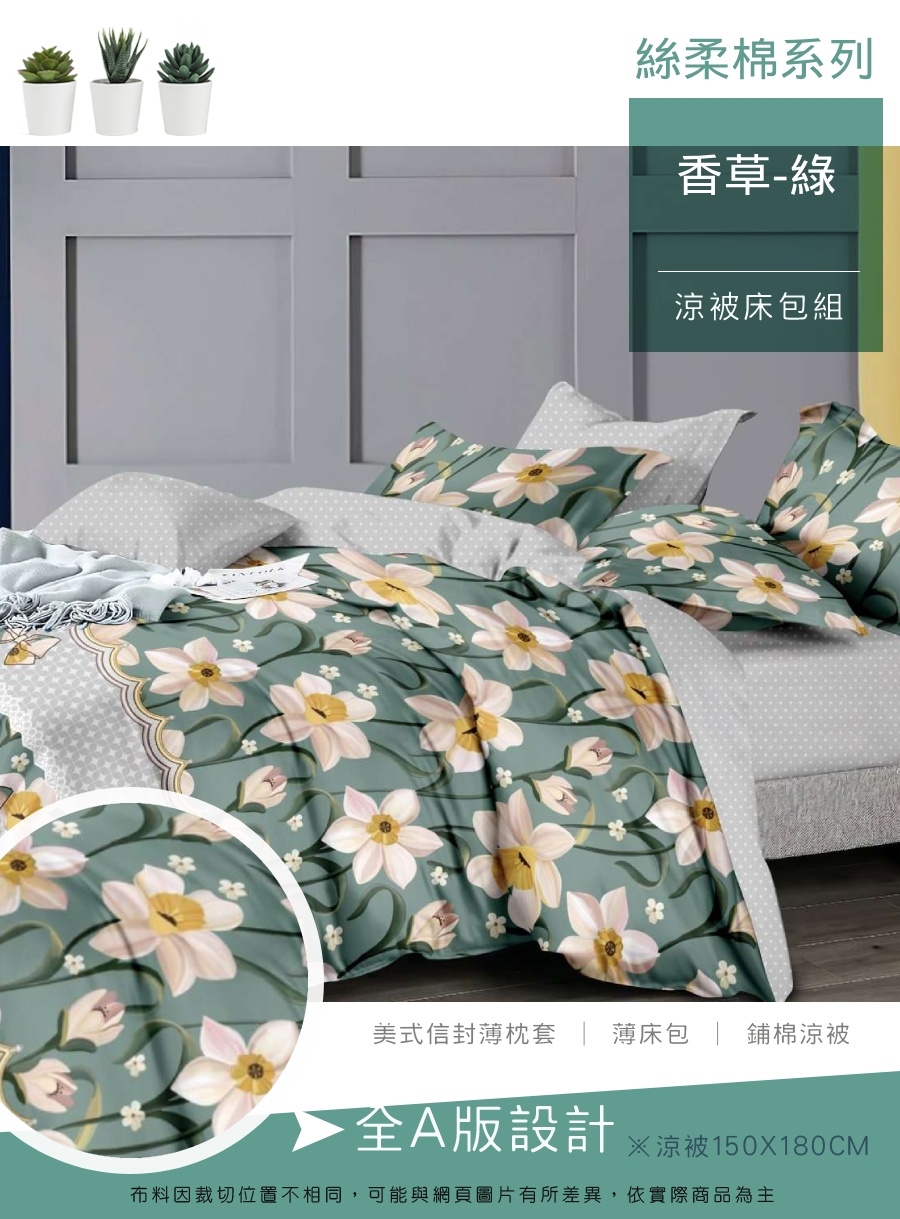2. 枕套因裁切方式會有不同圖段不一定會與花色展示圖中一致,下單前請考量是否能接受此裁製方式。