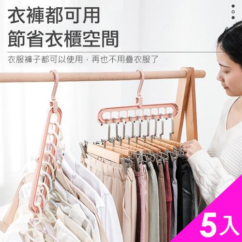 CS22 多功能可摺疊多層魔術衣褲收納掛衣架5入(顏色採隨機出)