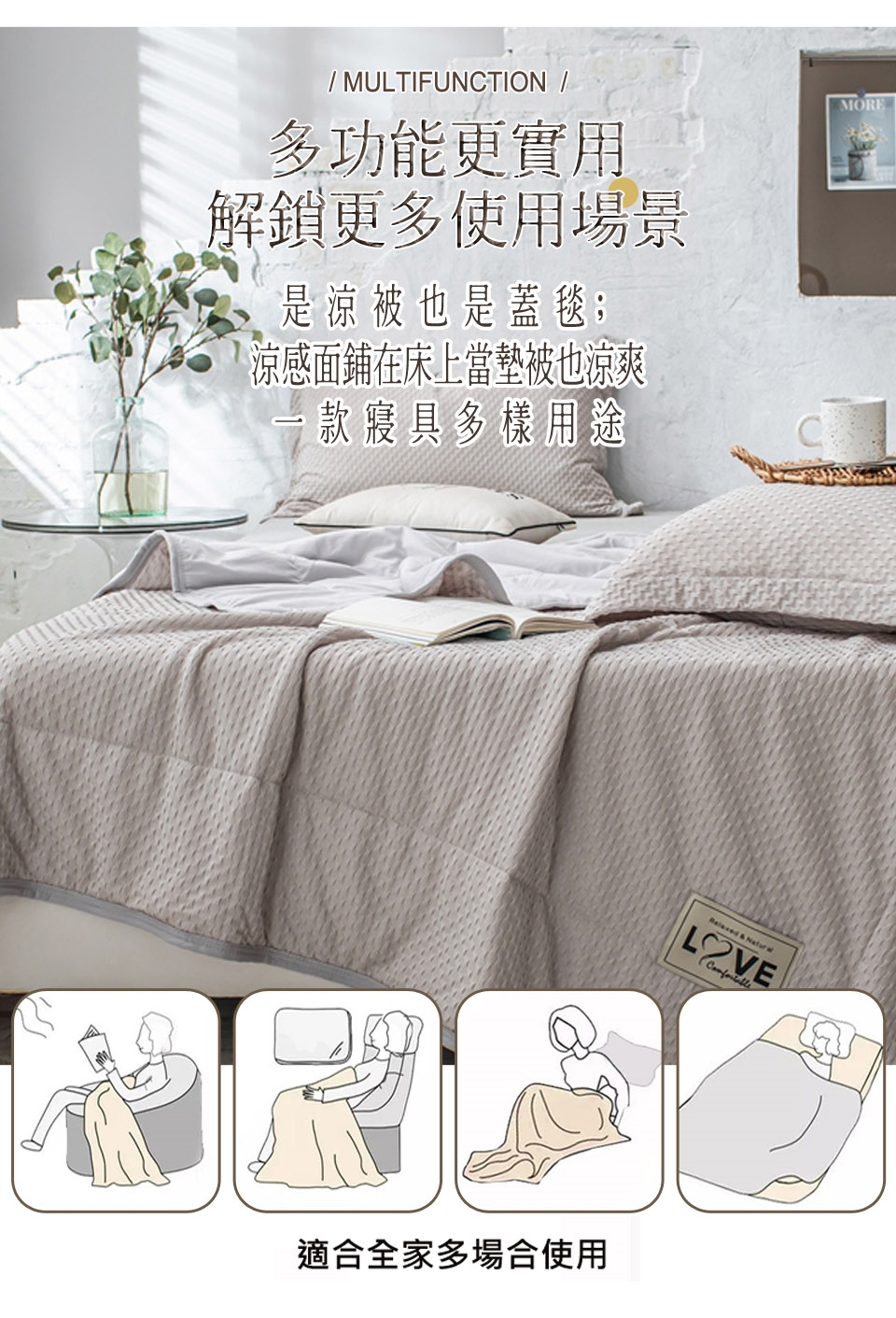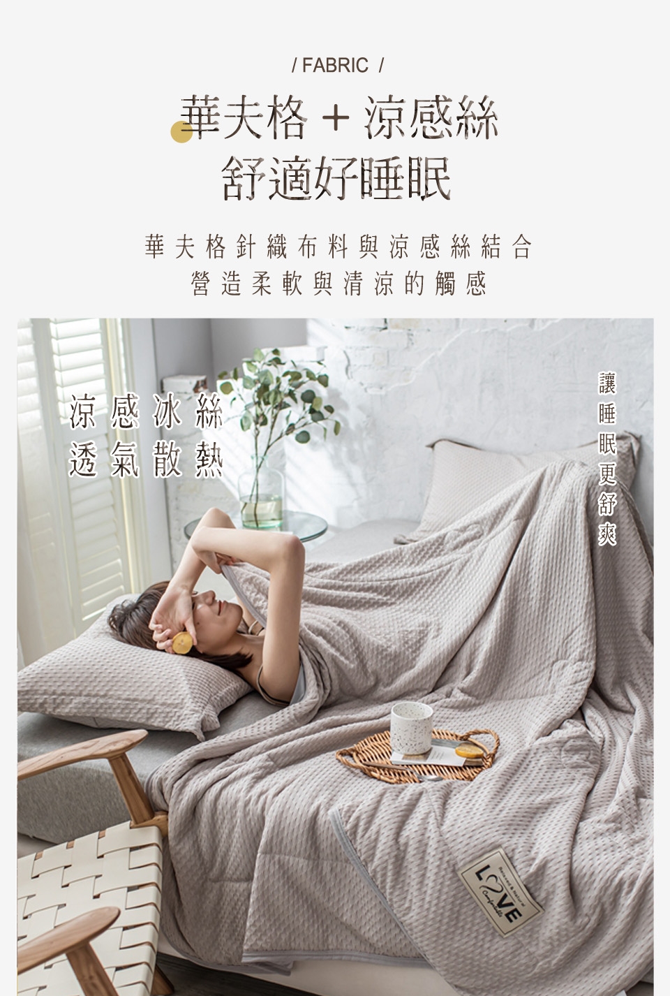涼被是直接蓋,主要為春/夏季使用。