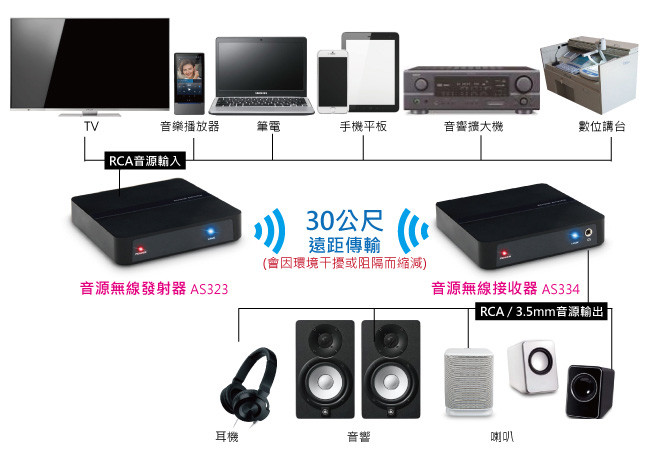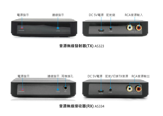 aim 無線音源接收器(AS334)需搭配aim無線音源發射器(AS323)使用,無法單獨使用或與其他無線發射器使用。