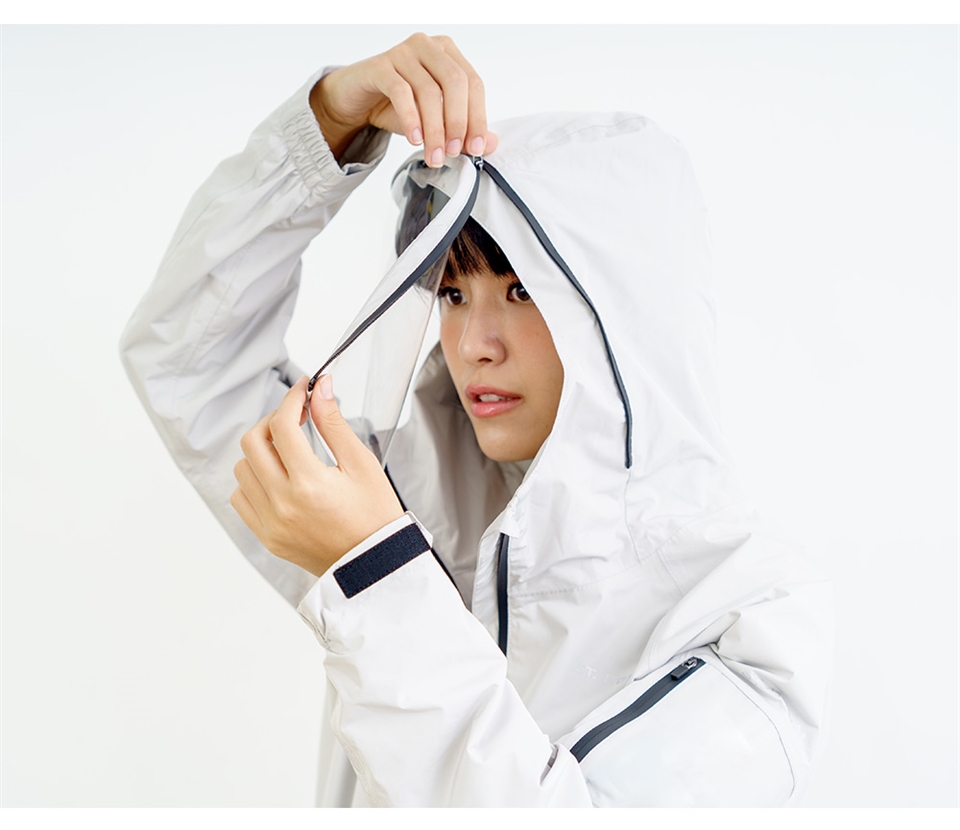 - 袖口鬆緊帶加魔鬼氈與袖絆搭配自由調整,讓袖口的防風性能大幅提高
