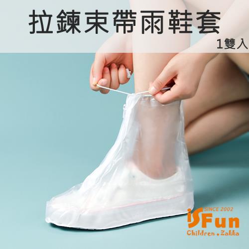 iSFun雨季必備 拉鍊束帶防滑防水雨鞋套1雙入 尺寸可選