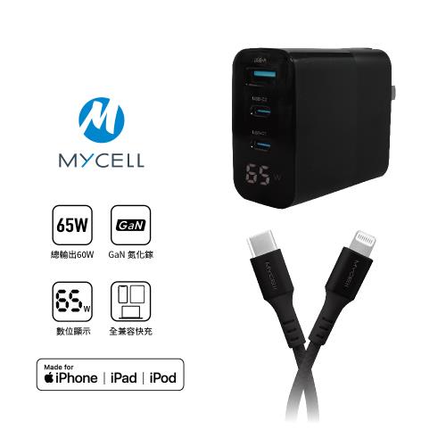 [MYCELL]MFI 認證65W 數顯GaN PD閃充充電組(收納組)