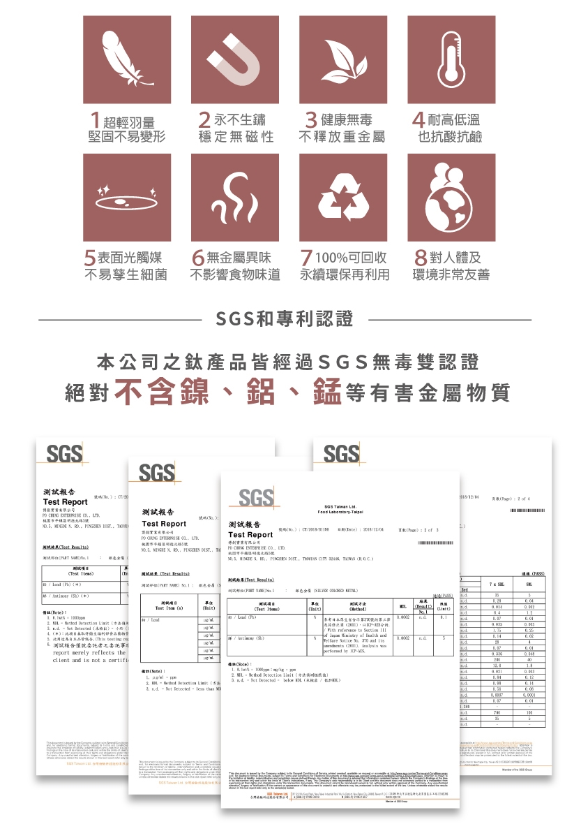 2.純鈦餐具表面光滑,不易卡垢,勿使用去漬粉、小蘇打粉、過碳酸鈉等還原酸系列之清潔劑,這些清潔劑會把二氧化鈦薄膜破壞導致褪色,出現鈦原色,雖一樣安全無毒但影響美觀。
