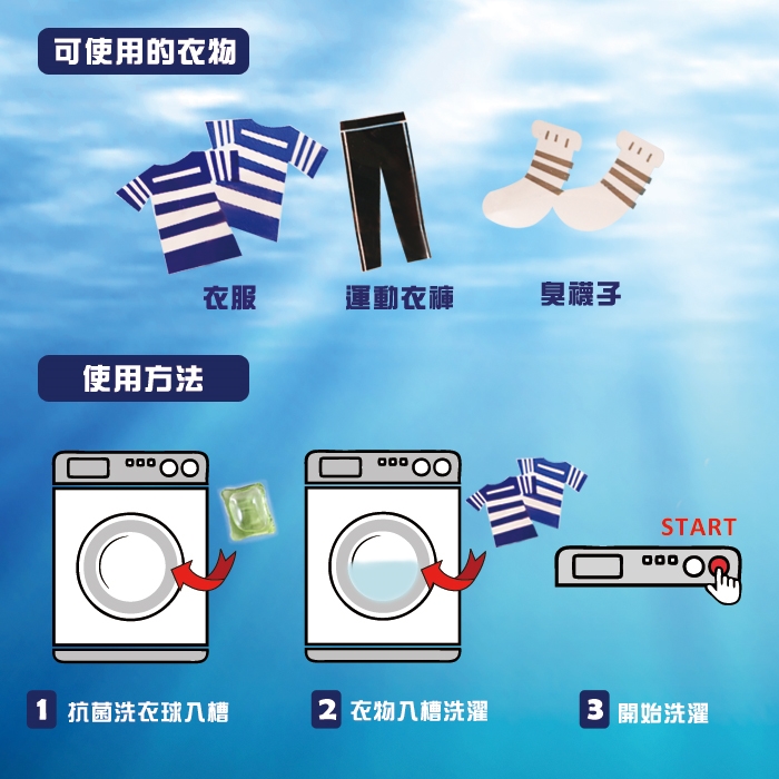 (1)將本洗衣球直接放入洗衣機裡面,無需撕破洗衣球外膜。
